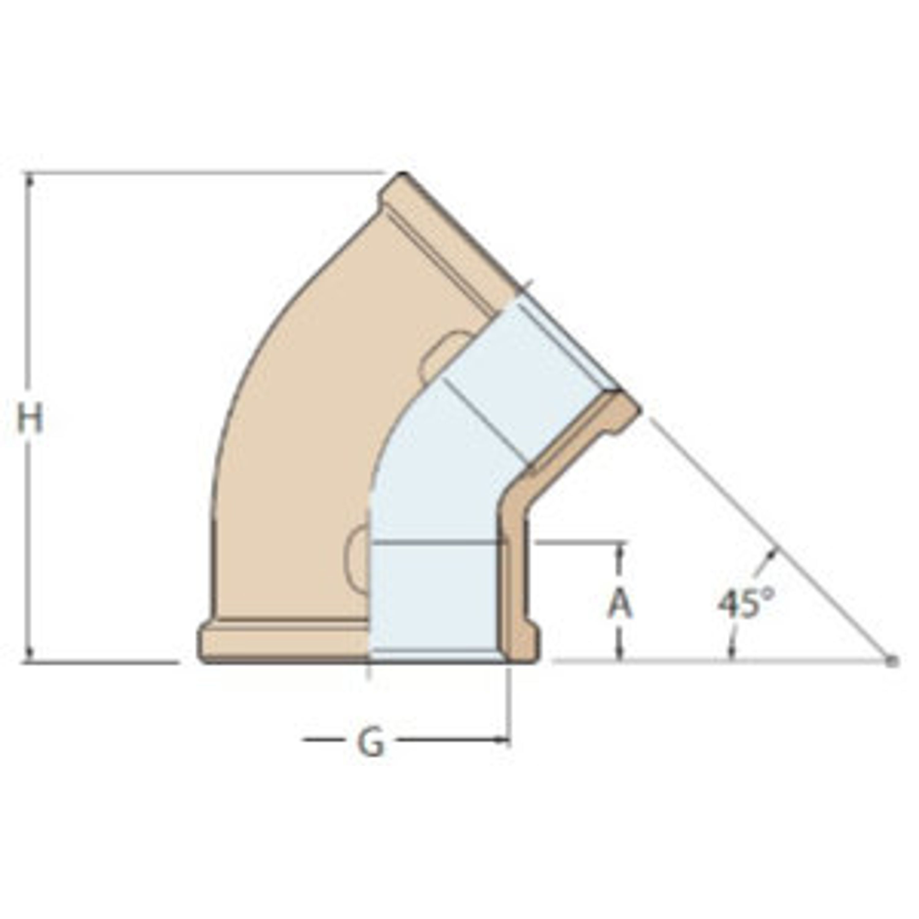 45° bøjning i massivt bronze, hun–hun, fremstillet af Guidi.