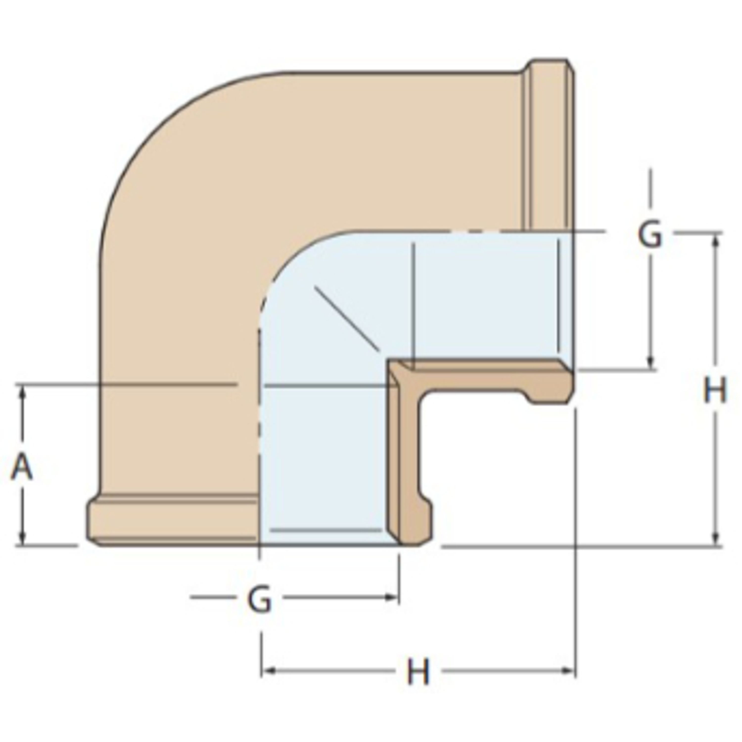 90° bøjning i massivt bronze, hun–hun, fremstillet af Guidi.