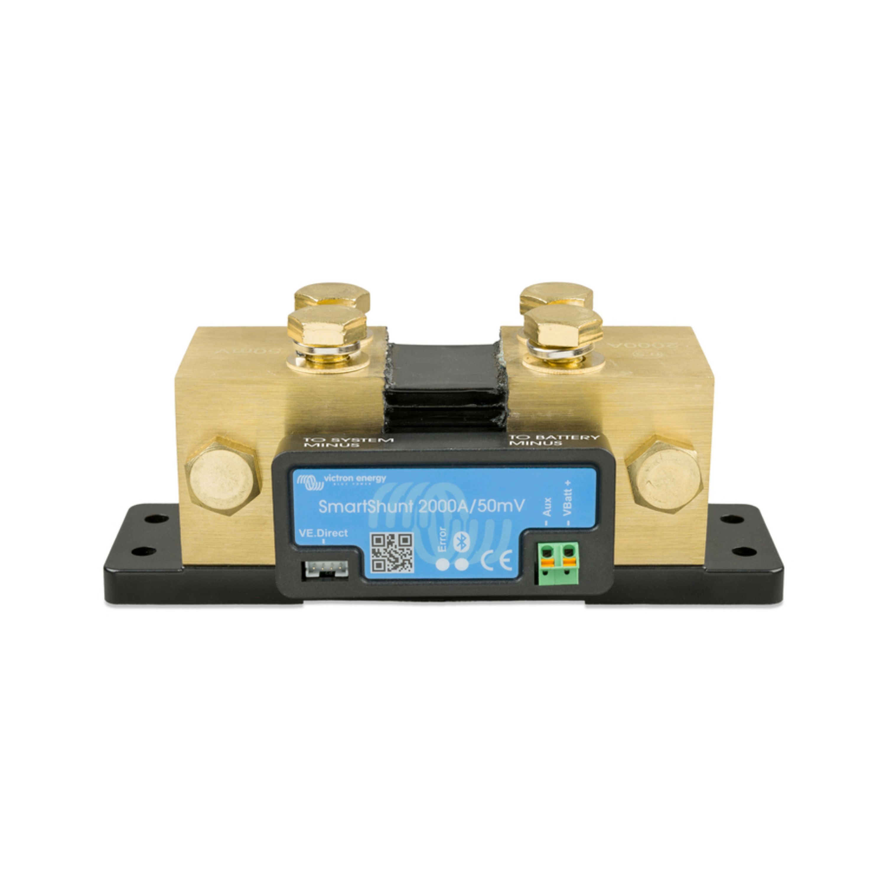 SmartShunt er udstyret med Bluetooth, VE.Direct-port og en tilslutning der kan bruges til: overvågning af et andet batteri, midtpunktovervågning eller temperatursensor.